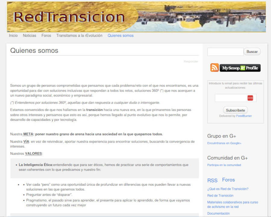 Red Transición fué la evolución de Reddeideas durante el 15M. Tiene un sitio de respaldo en WordPress.com.